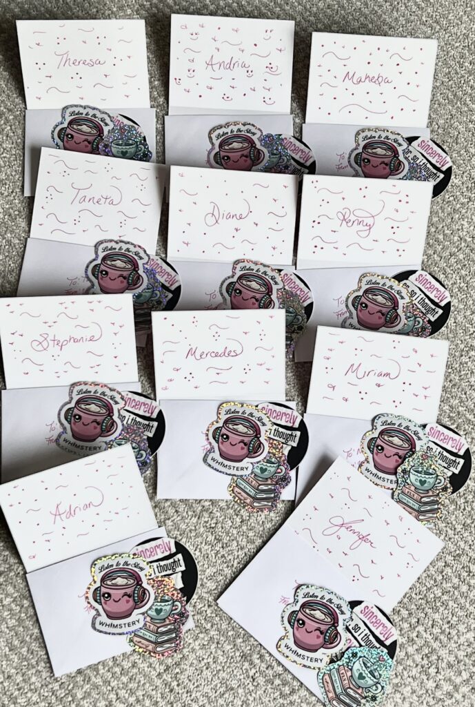I signed a lot of cards and bookplates for Whimstery founders + shipped them all over the world. (Thank you SO MUCH for buying stickers. I promise I’m bringing my ALL with these podcasts & audiobooks.)