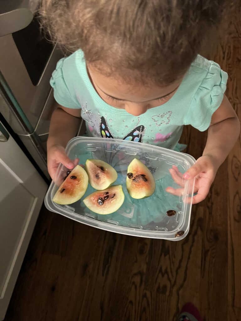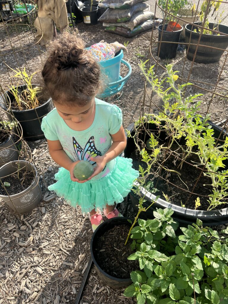 I gave up on having a watermelon harvest because a certain someone kept picking them off one by one while they were still growing…